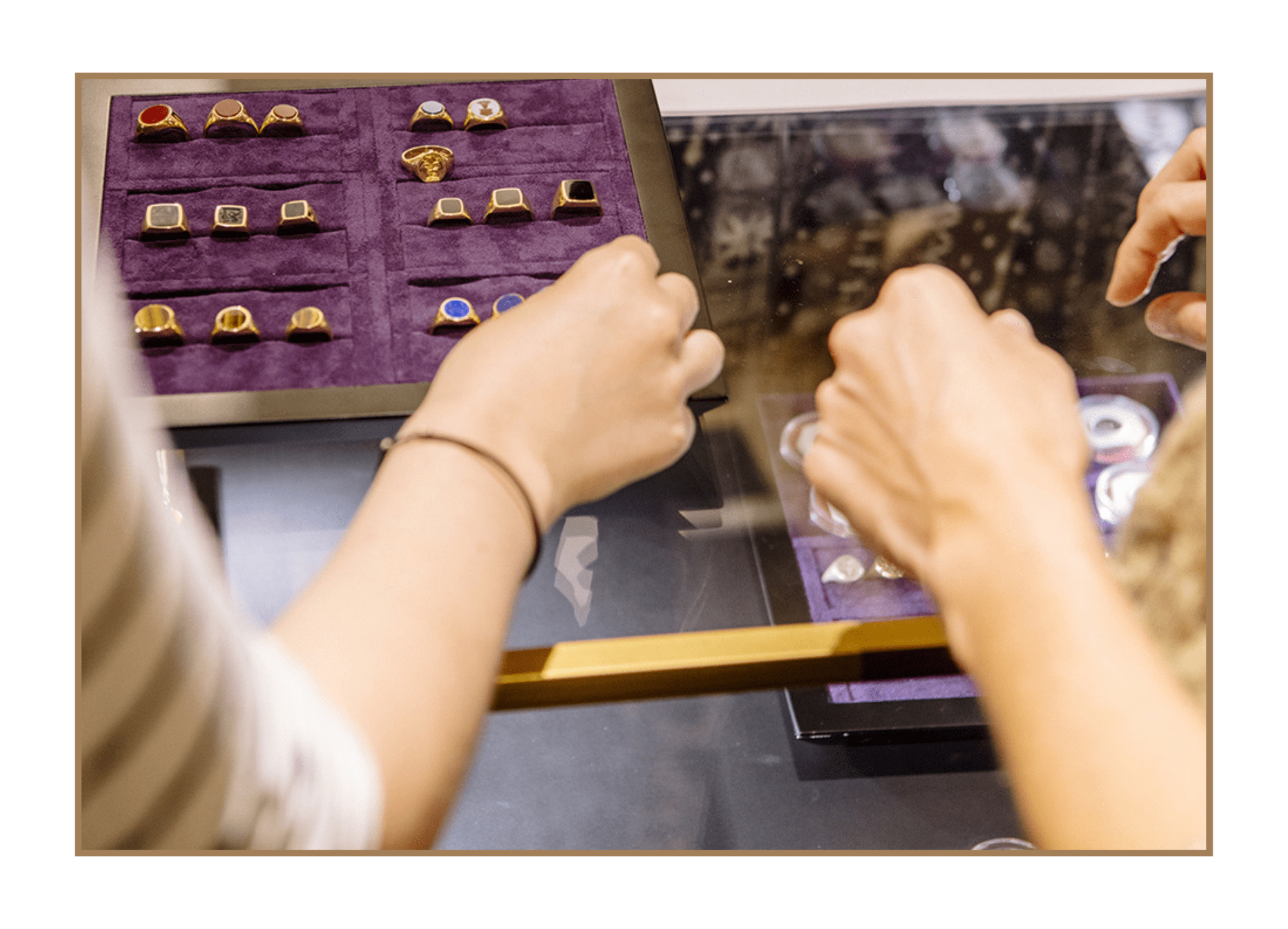 Depending on your choice of consultation, you’ll either sit down with one of our signet ring experts and design consultants for a tailored discussion, or explore our collection casually at your own pace.